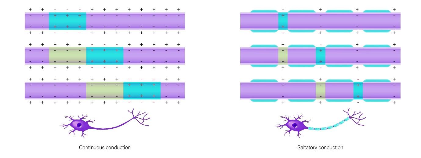 D. diffusion: This is the passive movement of molecules and does not describe the electrical leaping of a nerve impulse.