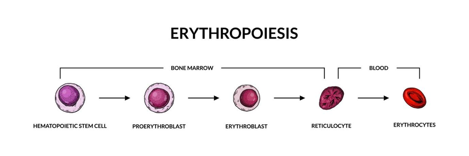 D. hematopoietic stem cells: While all blood cells originate here, the specific maturation sequence for red blood cells specifically identifies erythroblasts as the intermediate nucleated stage.
