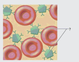 B. Antigens: Antigens are the specific molecular markers located on the plasma membrane of the red blood cells to which antibodies bind. In the diagram, the antigens are the targets being gripped by the Y-shaped molecules, not the molecules indicated by the arrows. Antigens determine the specific blood group phenotype of the cell.