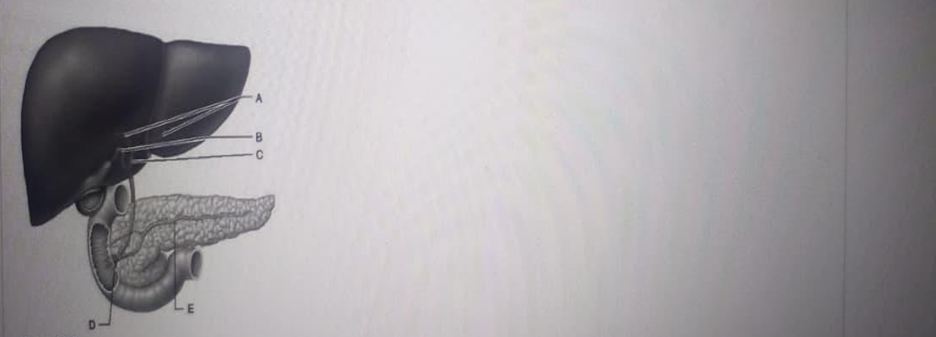 A. Right and left Hepatic Ducts: These are the right and left ducts that exit the liver, carrying bile produced by hepatocytes into the common hepatic duct.