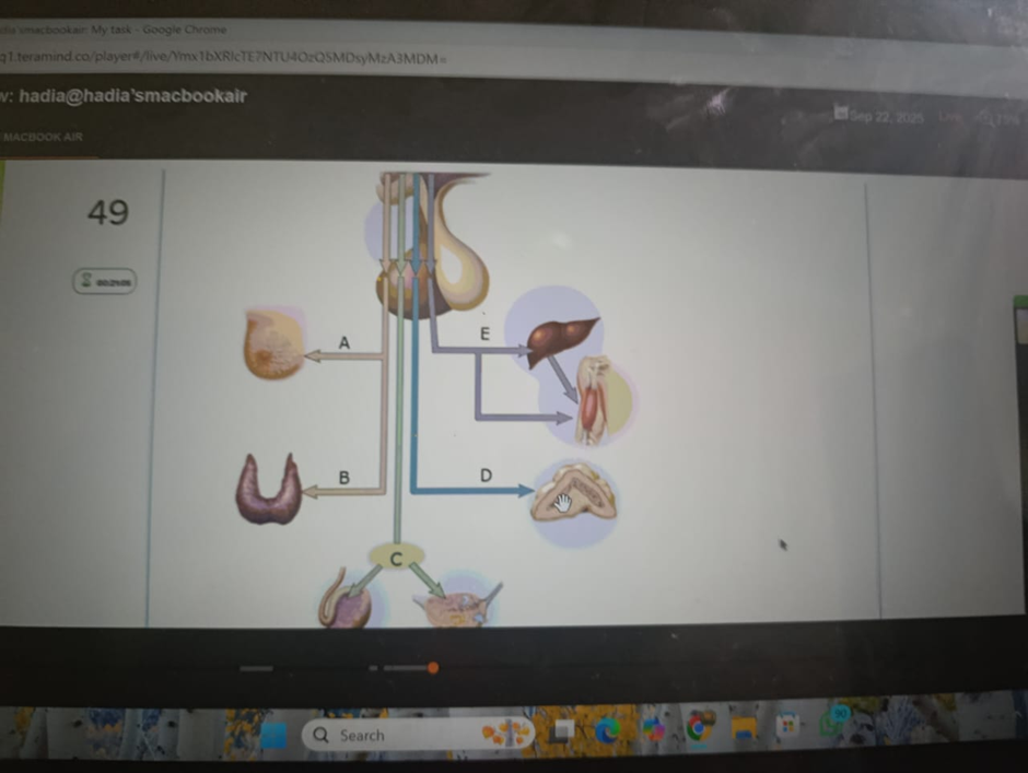 D. pancreas: The pancreas secretes insulin and glucagon regulating glucose metabolism, not primarily metabolic rate/alertness in the sense described.