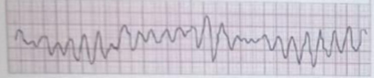 C. Atrial tachycardia is a regular rhythm originating from an ectopic atrial focus, usually with distinct P waves preceding each QRS. This patient’s rhythm is extremely irregular and lacks discernible P waves, so atrial tachycardia is not consistent with the findings.