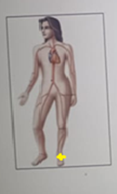 On the top of the foot, just lateral to the extensor hallucis longus tendon (this tendon runs to the big toe) and proximal to the first intermetatarsal space.