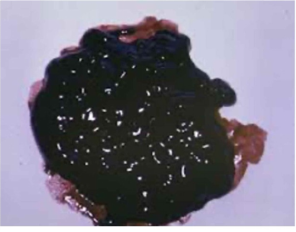 unit for gastrointestinal bleeding. The stool appears black and tarry.