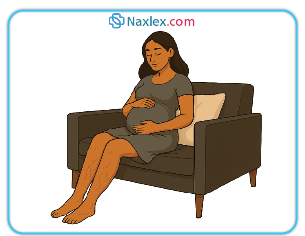 Nursing Insights: Nurses must differentiate physiological edema from preeclampsia by assessing for sudden, generalized swelling, headache, or visual changes. Patient education on leg elevation and compression stockings is critical to managing edema and improving comfort. Monitoring for skin integrity is also essential, as severe edema can lead to skin breakdown.
