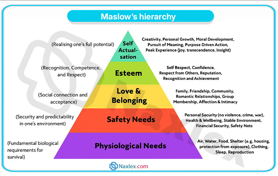 Maslow’s hierarchy of needs emphasizes that basic physiological requirements must be met before individuals can focus on safety, social, or higher-level psychological needs.