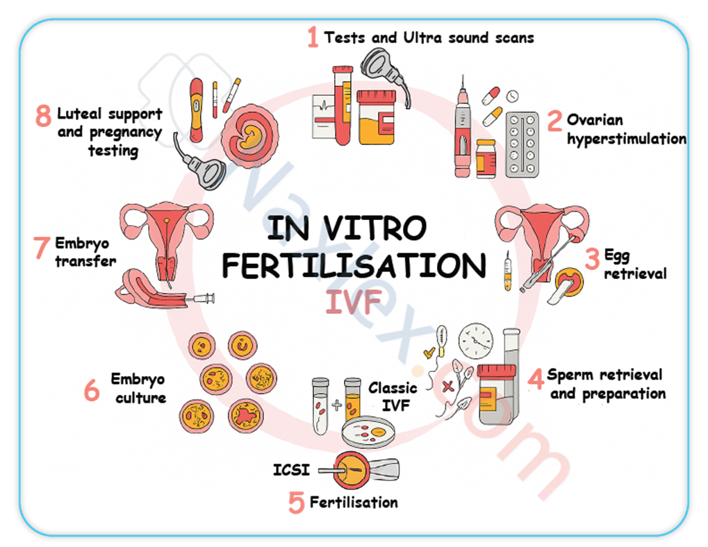 • IVF is a multi-step process where oocytes are retrieved from the ovaries, fertilized with sperm in a laboratory, and the resulting embryo is transferred to the uterus.