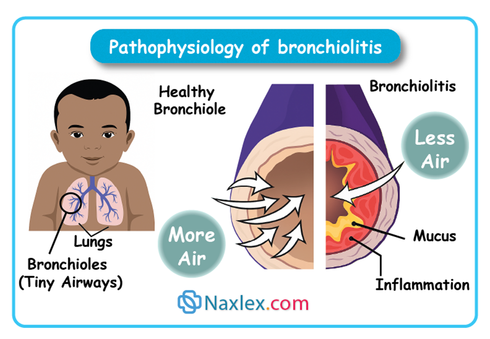 Respiratory Syncytial Virus (RSV) bronchiolitis is a common viral lower respiratory tract infection in infants that leads to airway inflammation, edema, and excessive mucus production. Infants are at high risk of respiratory distress and failure due to smaller airways and limited reserve. The priority is to maintain a patent airway and adequate oxygenation.