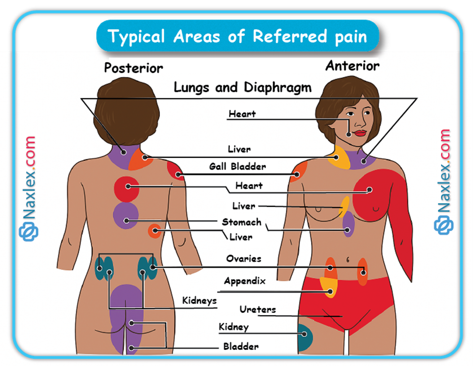 - Referred pain is due to shared neural pathways between visceral organs and somatic structures.