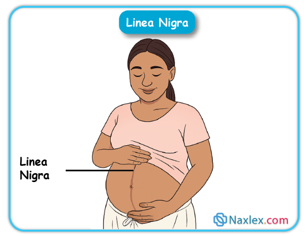 • Skin Changes: Hormonal changes, particularly increased melanocyte-stimulating hormone (MSH), lead to melasma (chloasma), linea nigra, and darkening of the areolae. Striae gravidarum result from connective tissue stretching and glucocorticoid effects.