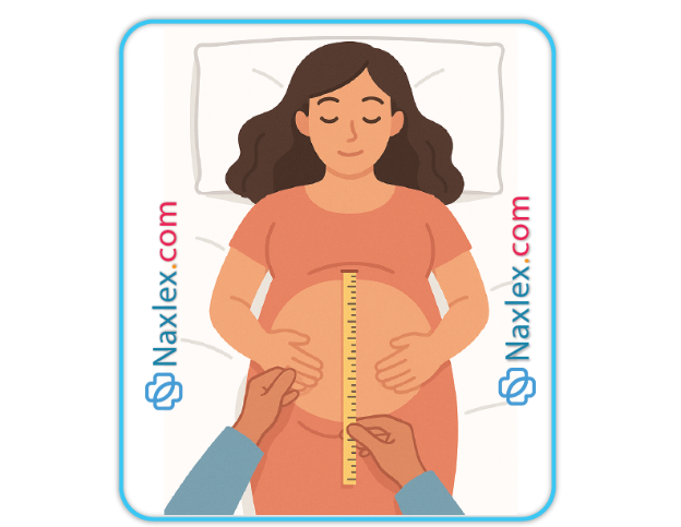 • Procedure: Position the patient supine with an empty bladder to relax abdominal muscles. Use a non-elastic measuring tape, placing the zero mark at the pubic symphysis and extending to the fundus.