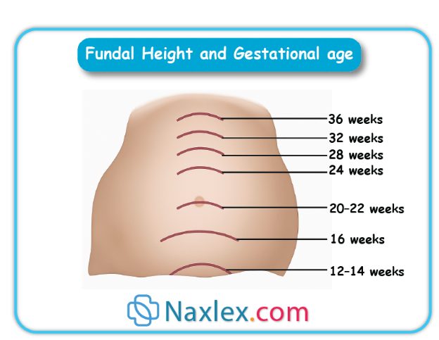 • Expected Measurements: At 20 weeks, the fundus is at the umbilicus (approximately 20 cm); at 36 weeks, it reaches 33-36 cm, near the xiphoid process.