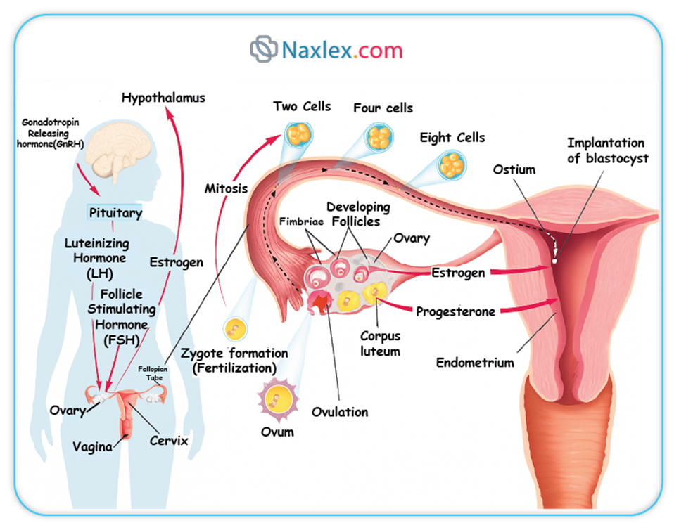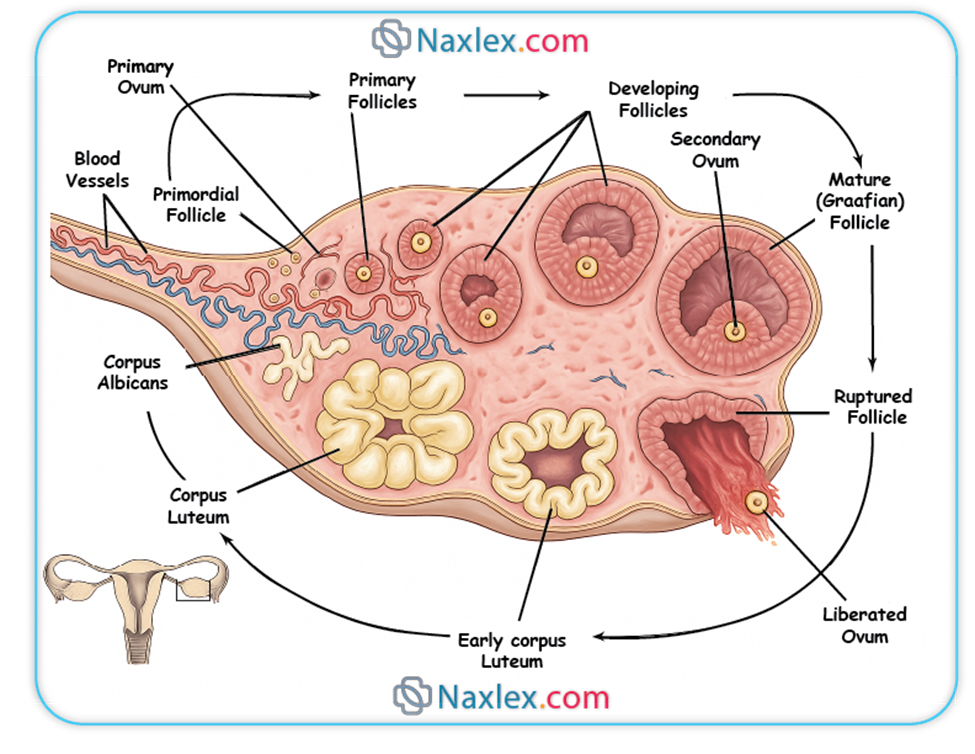 The menstrual cycle is a highly regulated process involving the interplay of the hypothalamus, anterior pituitary, ovaries, and uterus through the HPO axis. Key hormones, including GnRH, FSH, LH, estrogen, progesterone, and inhibin, orchestrate follicular development, ovulation, and endometrial preparation. The ovarian cycle consists of the follicular, ovulatory, and luteal phases, while the uterine cycle includes the menstrual, proliferative, and secretory phases. Feedback mechanisms, both negative and positive, ensure precise hormonal control. Nurses must understand these processes to assess menstrual health, recognize deviations such as amenorrhea or menorrhagia, and provide patient education on fertility, contraception, and menstrual hygiene. Practical nursing interventions include symptom management, health promotion, and collaboration with healthcare providers to address abnormalities. Mastery of these concepts is essential for delivering evidence-based care to women across the reproductive lifespan.