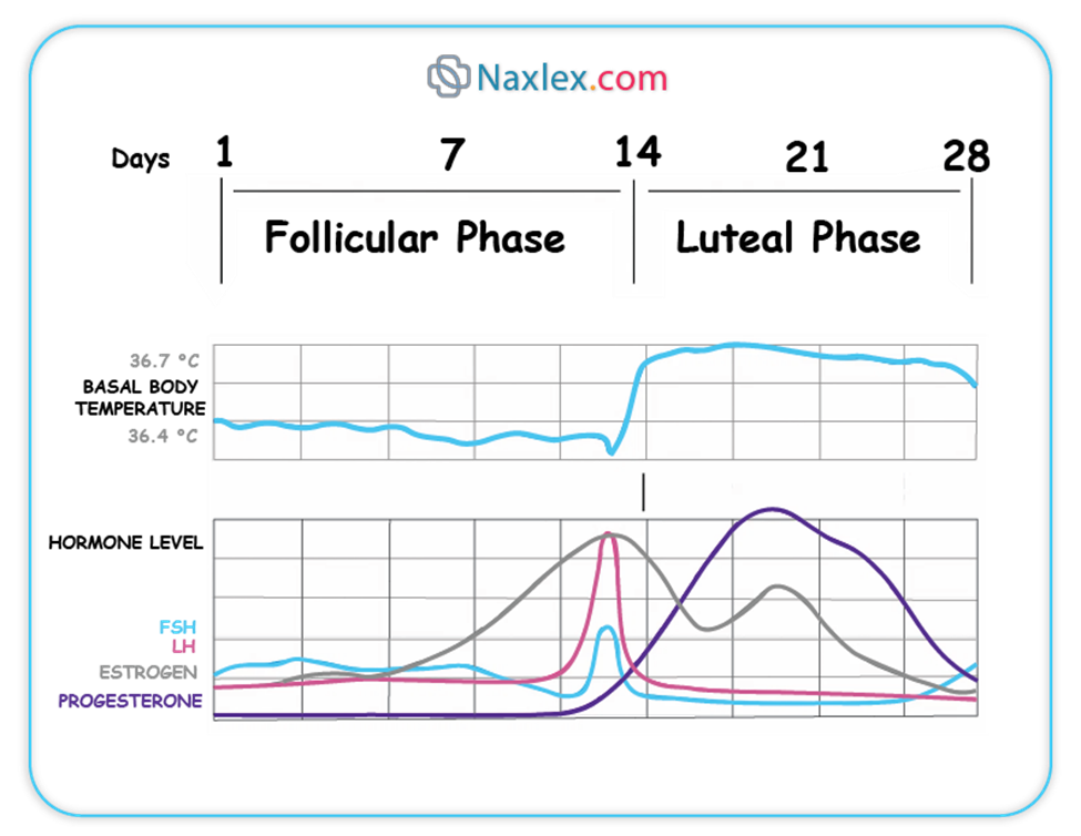 • Nurses must teach patients to track basal body temperature to confirm ovulation, as a biphasic pattern indicates a normal luteal phase.